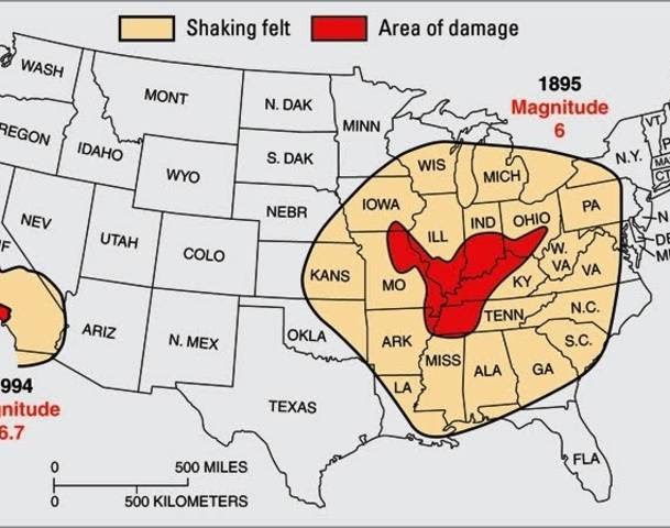 I usually check George Ure’s site once a day. On Friday, he included some observations from Patrick Geryl about the possibility of a strong earthquake (a 9.5+??) at the end of the month, the 28th, and why. The 28th would be just about the time President Obama should be getting back from Israel. These observations by Patrick Geryl are not proof of anything, but since some of us are already watching the New Madrid, it doesn’t hurt to at least be aware of the information. The map above shows the potential area affected by a magnitude 6. How much more so by a magnitude 9.5? But I have to be the first to say that if a 9.5 were to strike, it could strike anywhere in the world and not necessarily the New Madrid. Troubling anyway, though, espcially since Israel has been brought into the mix. Like Suspicious Observers always says, “Eyes open, no fear.” Here is the excerpt from Ure: