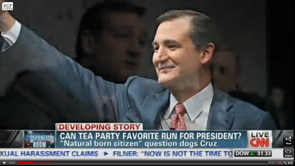 WOLF BLITZER: He’s taken the Senate by storm stirring up controversy and ruffling feathers on both sides of the aisle in his first months on the job. For that Ted Cruz is a Tea Party favorite already generating lots of buzz about the 2016 race for the White House. However, the question isn’t only will he run, but can he run under the U.S. Constitution?