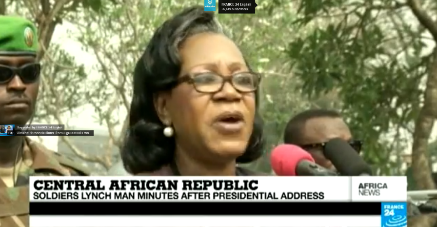 The Central African Republic has a new President. It is Ms. Samba Panza. She gave a speech today to thousands, and ‘Re-introduced’ the Army (FACA Armed Forces of Central Africa) to the people.