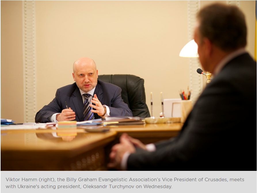 “Stories of God’s hand abound,” Oleksandr Turchynov, a devout evangelical, said during a private meeting with BGEA Vice President of Crusades Viktor Hamm.