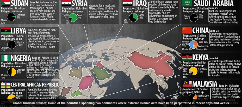 The article points out that these countries have a creeping form of ideology (Sharia law) and that is quickly overtaking the world. The media and western leaders are quick to use their politically correct terms such as sectarian/tribal divides and sectarian/tribal conflicts, but it is far more dangerous, far darker than that. Could it be what Daniel witnessed in his time? It disturbed him so badly that he lay exhausted for days, unable to move. Which is what is happening to the watchmen and those witnessing these atrocities and the governments which are trying to direct and control this chaos.