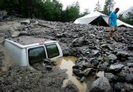 Authorities have made contact with the Forest Home camp, where the 500 visitors were staying, and said everyone is safe — but the camp was still trapped behind mudflow late Sunday.