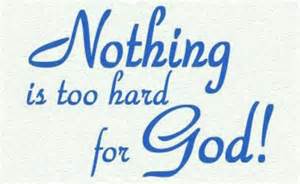 Many may look to man for all help, but when we realize every step we take and every breath we breathe comes from God then we find nothing is impossible to him. Therefore by this belief Jesus taught us even if we have the faith the size of a mustard seed we can move any mountain that stands in our way! (Matthew 17:20). And Jesus said unto them, Because of your unbelief: for verily I say unto you, If ye have faith as a grain of mustard seed, ye shall say unto this mountain, Remove hence to yonder place; and it shall remove; and nothing shall be impossible unto you.