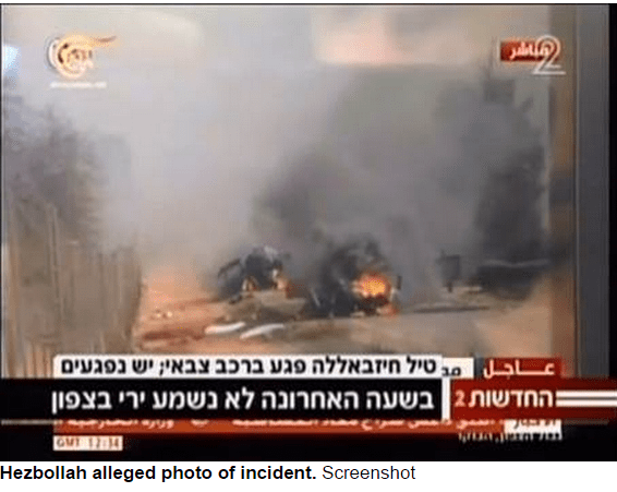 Today Israel & Spain are mourning 3 soldiers that were killed on the Lebanon border. Hezbollah attacked 2 IDF vehicles with anti-tank weapons killing 2 IDF soldiers and 1 Spanish UNIFIL soldier. The same attack wounded 7. It is reported that Israel returned fire. As you can imagine tensions are extremely high. How many times must Israel be attacked before the world say’s enough instead of condemning them. Of course Hezbollah immediately claimed responsibility as if this were a great accomplishment. This is the picture they released.