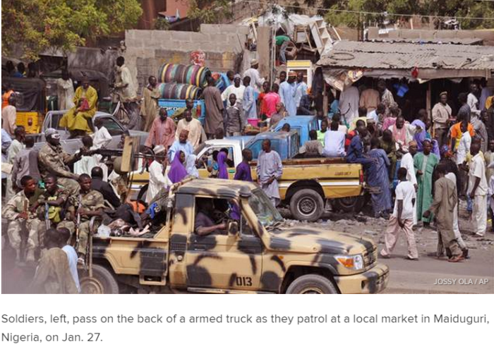 There also has been fierce fighting in Maiduguri. According to NBC news in a recent report, 4 of the 5 roads leading into the city have been blocked by Boko Haram. Maiduguri has a population of about 2 million and is known for it’s trade. People are attempting to flee, but many can’t for the lack of money.