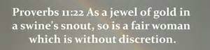 A woman who has no morals or as some would say is a loose woman God compares as a pig with a gold jewel in her snout. The picture here is even though she be decked to the hilt all beautiful with hair just so and jewelry upon her, it is her behaviour that makes her filthy. (Proverbs 11:22) As a jewel of gold in a swine’s snout, so is a fair woman which is without discretion…… (1 Peter 3:1-5).