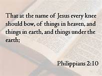 It is because of our Lords obedience who took it upon Himself to be a servant among men, and endured the cross did God exalt Him and was given a name above all names that every knee will one day bow before Him! (Philippians 2:5-12). Let this mind be in you, which was also in Christ Jesus: Who, being in the form of God, thought it not robbery to be equal with God: But made himself of no reputation, and took upon him the form of a servant, and was made in the likeness of men: And being found in fashion as a man, he humbled himself, and became obedient unto death, even the death of the cross. Wherefore God also hath highly exalted him, and given him a name which is above every name: That at the name of Jesus every knee should bow, of things in heaven, and things in earth, and things under the earth; And that every tongue should confess that Jesus Christ is Lord, to the glory of God the Father. Wherefore, my beloved, as ye have always obeyed, not as in my presence only, but now much more in my absence, work out your own salvation with fear and trembling.