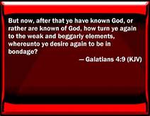 Nothing is one sided with God and although as Christians we seek to have a closer walk with the Lord and to get to know Him, it is also good to know that we are known of Him. Before we come to the knowledge of Christ the world around us holds our interest and we unknowingly are a servant to its beggarly elements and serve things other than God. Once we find the truth in Christ we see the errors we lived and find now that God knows us, how can we turn back to the old way of life? (Galatians 4:1-11). Now I say, That the heir, as long as he is a child, differeth nothing from a servant, though he be lord of all; But is under tutors and governors until the time appointed of the father. Even so we, when we were children, were in bondage under the elements of the world: But when the fulness of the time was come, God sent forth his Son, made of a woman, made under the law, To redeem them that were under the law, that we might receive the adoption of sons. And because ye are sons, God hath sent forth the Spirit of his Son into your hearts, crying, Abba, Father. Wherefore thou art no more a servant, but a son; and if a son, then an heir of God through Christ. Howbeit then, when ye knew not God, ye did service unto them which by nature are no gods. But now, after that ye have known God, or rather are known of God, how turn ye again to the weak and beggarly elements, whereunto ye desire again to be in bondage? Ye observe days, and months, and times, and years. I am afraid of you, lest I have bestowed upon you labour in vain.