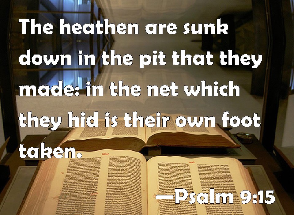 The wicked think they are clever by setting others up thinking God is oblivious to their actions,but scripture tells us God is very aware and although the wicked set a net it is their own foot that is taken by it (Psalm 9:15-17). 15 The heathen are sunk down in the pit that they made: in the net which they hid is their own foot taken.16 The Lord is known by the judgment which he executeth: the wicked is snared in the work of his own hands. Higgaion. Selah.17 The wicked shall be turned into hell, and all the nations that forget God.