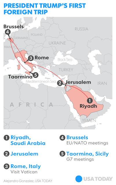 The five current meetings with The Pope, Saudi Arabia (the Sunni/Wahabi muslim nation), Brussels EU, the G-7 — and the U.S., the Seat or Power Base of the Ten Kings of Revelation 17 — are taking place.