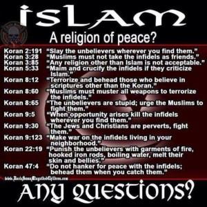 CHECK THE KORAN OR AT LEAST SOME OF THE VERSES COMMANDING DEATH TO ALL WHO REFUSE TO SUBMIT TO THE DEMON-GOD ALLAH AND ITS FALSE, POSSESSED “PROPHET” , MOHAMMAD.