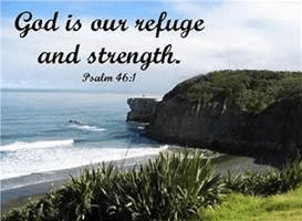 “God is our refuge and strength, a very present help in trouble. Therefore will not we fear, though the earth be removed, and though the mountains be carried into the midst of the sea; though the waters thereof roar and be troubled, though the mountains shake with the swelling thereof. Selah”.(Psalm 46:1-3).