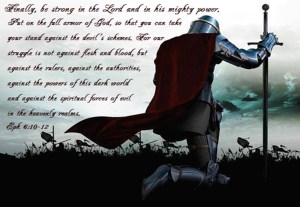He commands me to put on all his amour, the helmet of salvation, breastplate of righteousness, belt of truth and upon my feet the gospel of peace, Taking up the shield of faith and his mighty sword – his word so in all things I will be able to stand against the wiles of the devil.