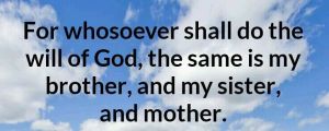 We are all born into our flesh and blood families,yet there is an eternal family who honor and serve God by His spirit(John 4:23,24).Jesus taught of this family when the multitude said to Him that His mother and brethren were outside waiting to see Him,it was then He said whosoever shall do the will of God is of His family(Mark 3:32-35). 32 And the multitude sat about him, and they said unto him, Behold, thy mother and thy brethren without seek for thee.33 And he answered them, saying, Who is my mother, or my brethren?34 And he looked round about on them which sat about him, and said, Behold my mother and my brethren!35 For whosoever shall do the will of God, the same is my brother, and my sister, and mother.