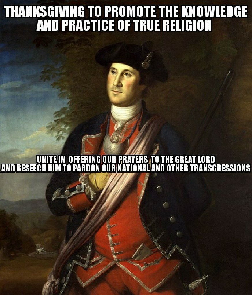 George Washington: Whereas it is the duty of all Nations to acknowledge the providence of Almighty God, to obey his will, to be grateful for his benefits, and humbly to implore his protection and favor, and whereas both Houses of Congress have by their joint Committee requested me “to recommend to the People of the United States a day of public thanksgiving and prayer to be observed by acknowledging with grateful hearts the many signal favors of Almighty God especially by affording them an opportunity peaceably to establish a form of government for their safety and happiness. Now therefore I do recommend and assign Thursday the 26th day of November next to be devoted by the People of these States to the service of that great and glorious Being, who is the beneficent Author of all the good that was, that is, or that will be. That we may then all unite in rendering unto him our sincere and humble thanks, for his kind care and protection of the People of this Country previous to their becoming a Nation, for the signal and manifold mercies, and the favorable interpositions of his providence, which we experienced in the course and conclusion of the late war, for the great degree of tranquility, union, and plenty, which we have since enjoyed, for the peaceable and rational manner, in which we have been enabled to establish constitutions of government for our safety and happiness, and particularly the national One now lately instituted, for the civil and religious liberty with which we are blessed; and the means we have of acquiring and diffusing useful knowledge; and in general for all the great and various favors which he hath been pleased to confer upon us. And also that we may then unite in most humbly offering our prayers and supplications to the great Lord and Ruler of Nations and beseech him to pardon our national and other transgressions, to enable us all, whether in public or private stations, to perform our several and relative duties properly and punctually, to render our national government a blessing to all the people, by constantly being a Government of wise, just, and constitutional laws, discreetly and faithfully executed and obeyed, to protect and guide all Sovereigns and Nations (especially such as have shown kindness unto us) and to bless them with good government, peace, and concord. To promote the knowledge and practice of true religion and virtue, and the encrease of science among them and Us, and generally to grant unto all Mankind such a degree of temporal prosperity as he alone knows to be best. Given under my hand at the City of New York the third day of October in the year of our Lord 1789.