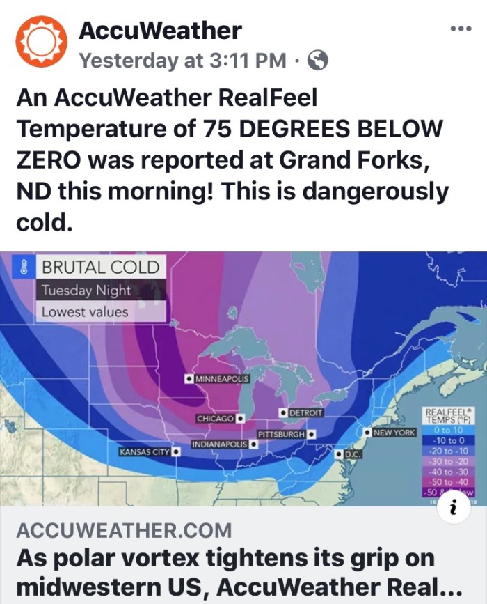 It’s being described as the worst in a generation. Temperatures that feel like -70 degrees F are ravaging the Midwest. Not only is the weather described by God in His words as for judgements it’s prophesied. It’s not global warming it’s God warning the world that He is in control. Just days after New York legalized the killing of babies even up to their birth. Gods wrath is evident. Don’t believe me? Listen to John Piper.