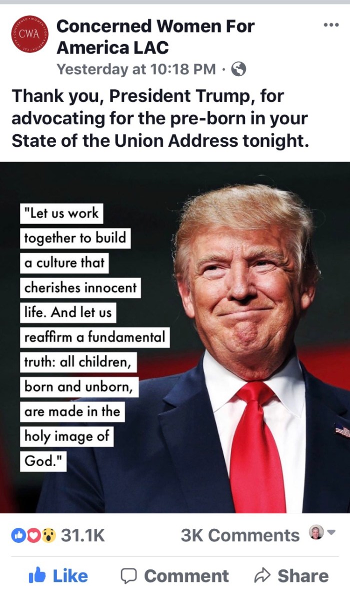 As I scroll over news reports about the President’s SOTU address, I might add that it was actually historic. Regardless of what you think of President Trump you have to admit that he has brought Christian values back into the Capitol. His statement about abortion was brilliant. All born and unborn are made in the image of God.