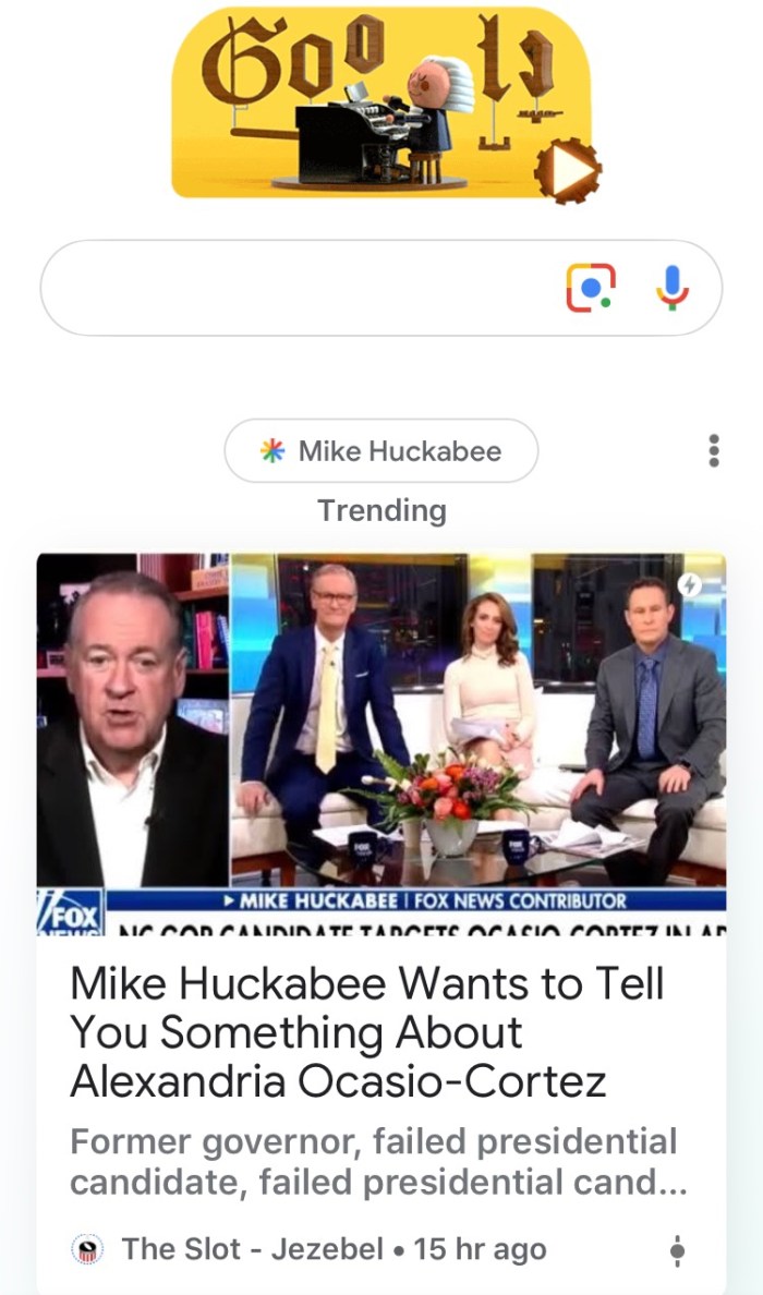 It’s a joke. Any wonder why they would write filth aimed at Gov. Huckabee? What’s so disturbing is that Google is promoting this filth as trending news. This was the last and final piece of the propaganda puzzle I needed to see the era of deception unfolding.