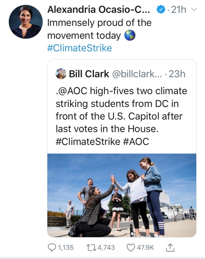 Her climate change policy wasn’t named by her, it was borrowed from FDR’s New Deal. But the New Deal is another post. FDR did alot of good, but he also created an interventionist Government, ie, more control over the Banks, and farmers, raising taxes on the wealthy and threatened to pack the courts with Liberal Justice’s to curb the conservatives. Sound familiar? However his work programs worked unlike the Dems today who don’t want to create sustainable employment but want to raise wages to unsustainable levels. Thus creating low employment or like the policies of Obama when his policies created the over employment, meaning that businesses cut hours and hired only part time to avoid the high priced health care mandates thus causing people to work two or even three jobs to make up the difference which totally destroyed the middle class. So enter the new face of the party of destruction and death with their Green New Deals. And talk of free everything. Free college, free health care, blah, blah, blah, nothing in this world is free. And God still controls the weather. If the earth is burning up, it’s in God’s book. And nothing man can do, except repent of course, will change His word.