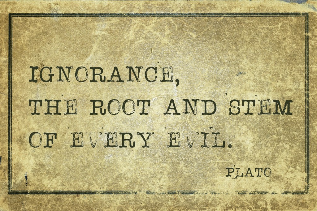 Ignorance: the state or fact of being ignorant : lack of knowledge, education, or awareness (Miriam Webster)
