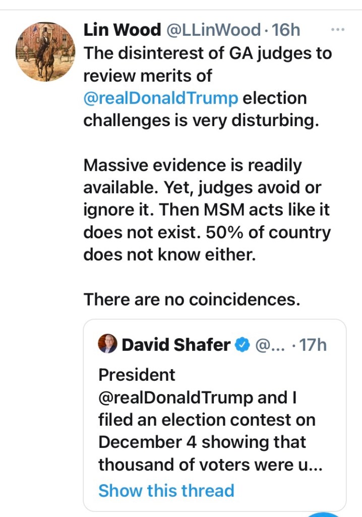 But when you look at the whole picture, from a frail old man who was drug across a finish line to the presidency, to the complete collapse of every branch of our government it’s clear they have indeed used an eraser to totally erase a population and their values. President Trump stood in the gap and we will stand behind him but I think I agree with Lin Wood it’s time to prepare.