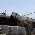 Horrifying moment Egyptian protestors pushed an armoured police van 50ft off a bridge before officers were stoned by mob